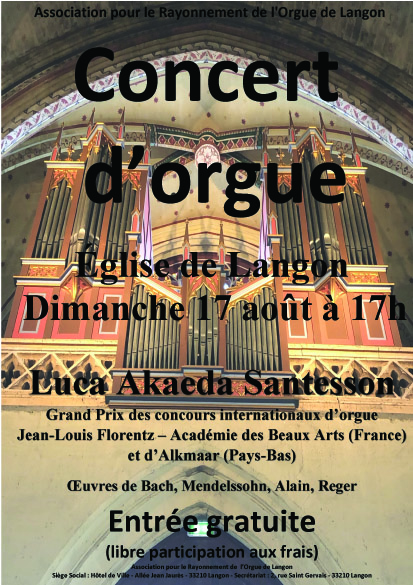 Concert d’orgue proposé par l’Association pour le rayonnement de l’orgue de Langon