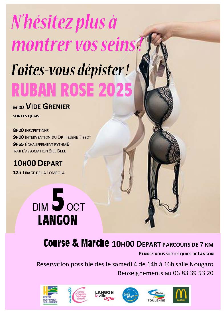Dimanche 5 octobre, journée solidaire et sportive dédiée à la lutte contre le cancer du sein sur les quais de Langon.